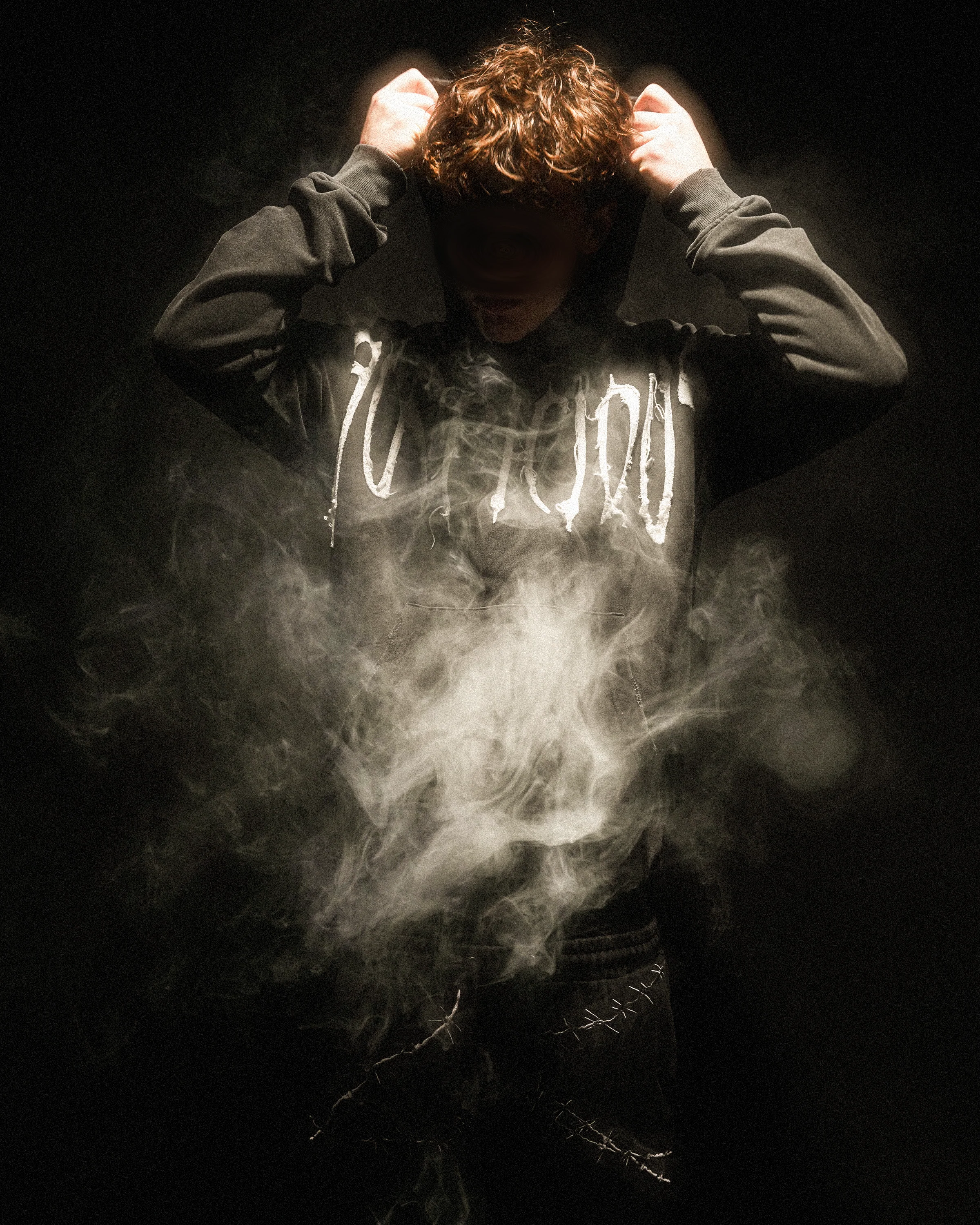 - DISTRESSING ON CUFFS, POCKET AND HOOD